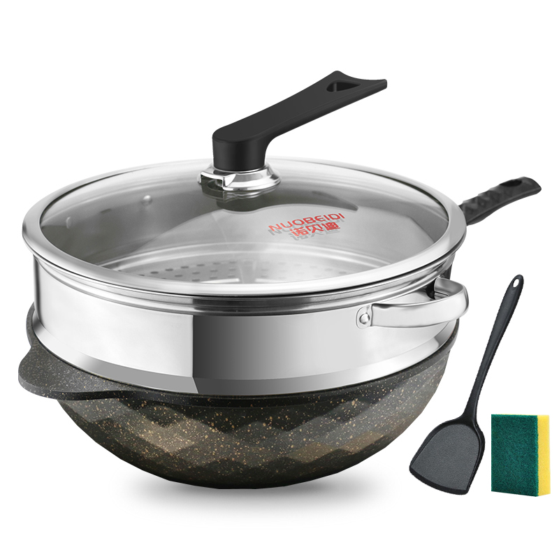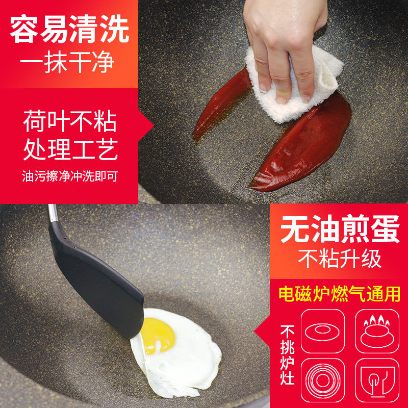 韩国麦饭石锅不粘锅炒锅家用炒菜锅燃气灶适用煎炒平底不沾麦石锅