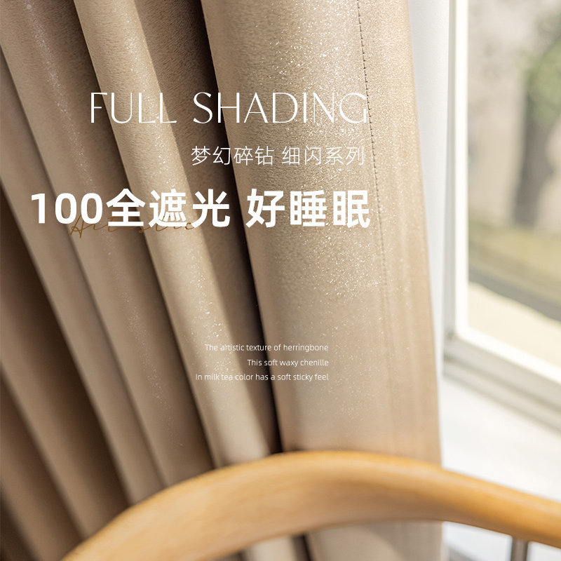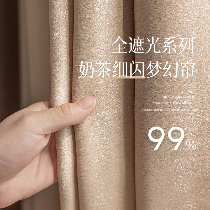 2025奶茶色星光细闪高级感全遮光卧室窗帘新款卧室客厅阳台飘窗布