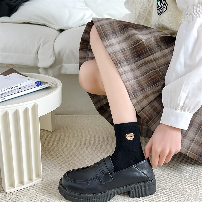 船袜短袜刺绣熊袜子女中筒纯棉新款网红秋春季外穿可爱卡通