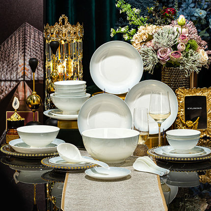 景德镇 28头餐具瓷器套装 家用骨瓷碗盘组合轻奢网红结婚搬家送礼
