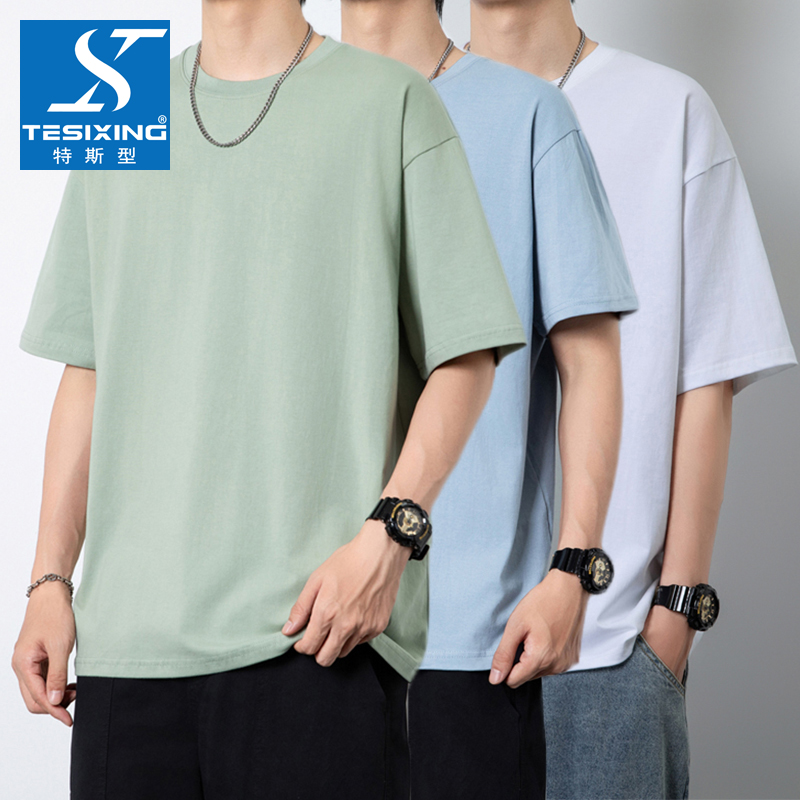 以纯YISHION重磅短袖t恤男士夏季宽松休闲纯色上衣潮流ins青少年