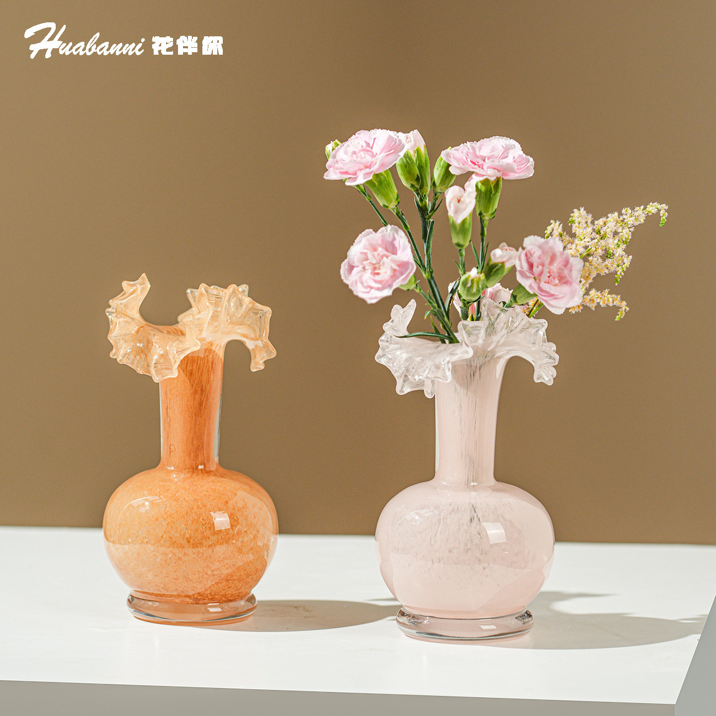 复古手工琉璃花瓶橙色不规则造型家居装饰摆件艺术花器桌面小花瓶