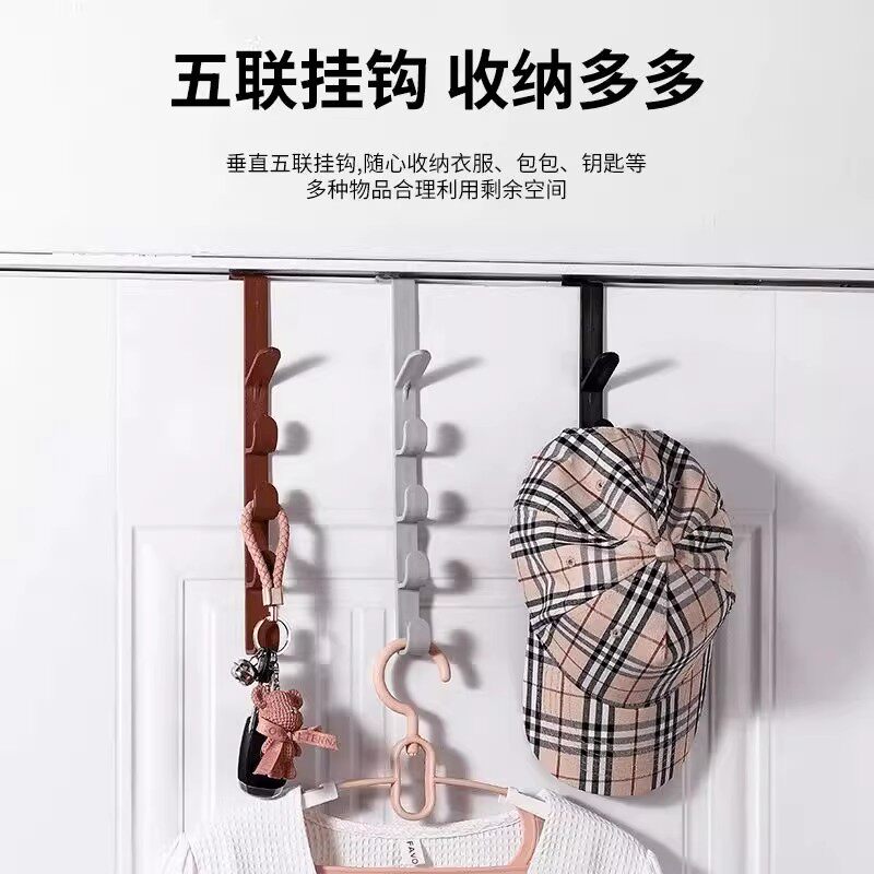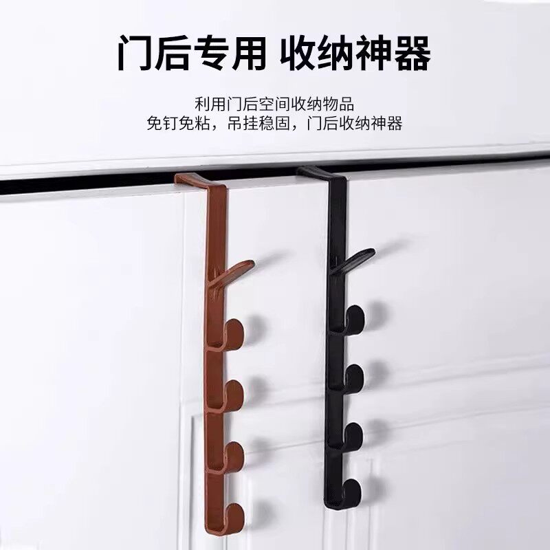 3个门后挂钩挂衣架免打孔壁挂式连排一字置物架收纳衣服帽子挂架