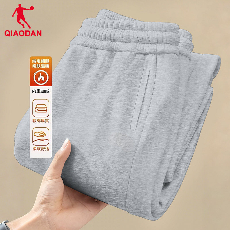 乔丹官方运动长裤男士冬季束脚美式卫裤宽松针织休闲灰色加绒裤子