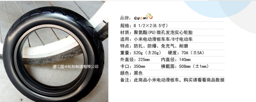 8 1/2X2实心胎230*50免充气轮胎8寸米电动车滑板车胎免内胎外胎