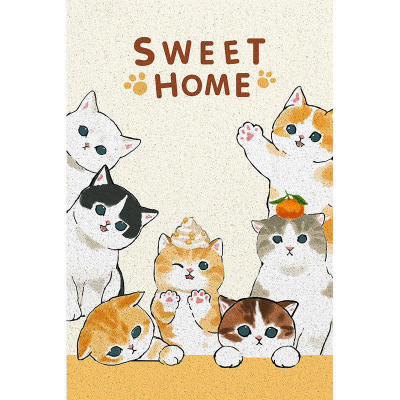 卡通猫咪玄关入户可裁剪丝圈地垫