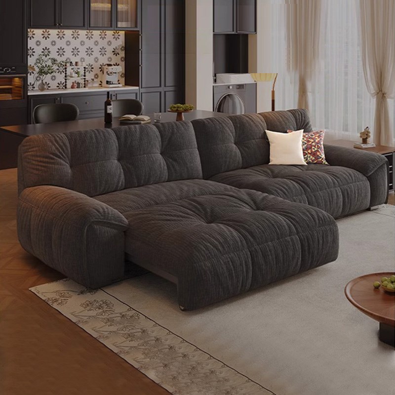 电动沙发床复古风布艺黑色小户型客厅多功能沙发懒人棉花糖