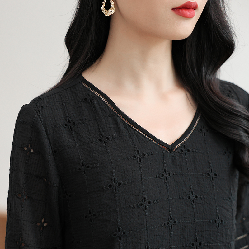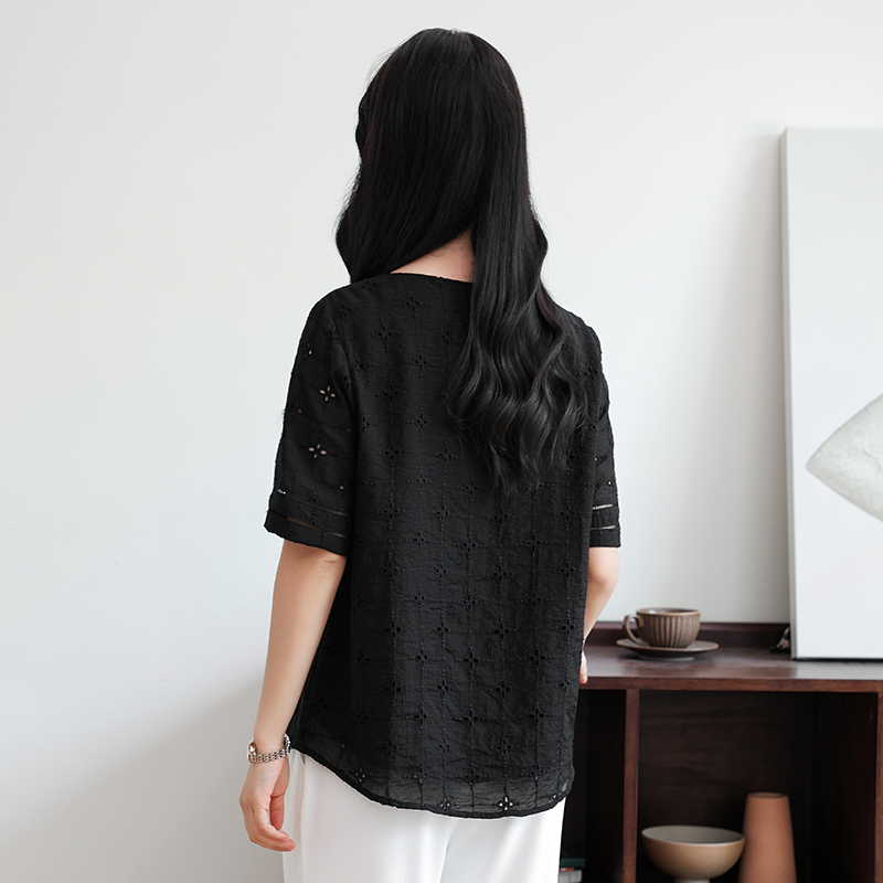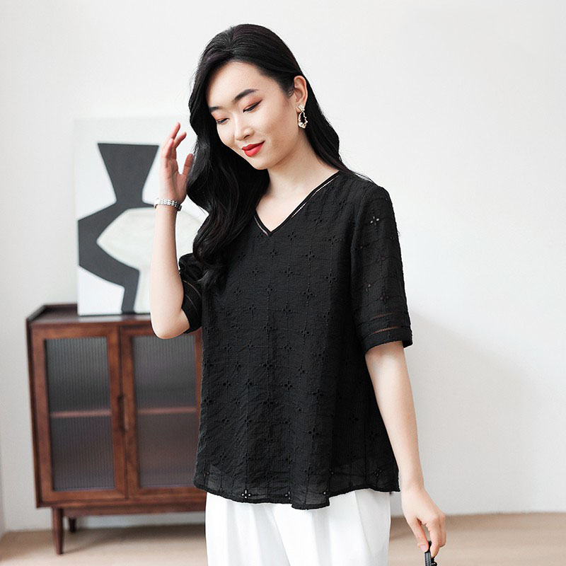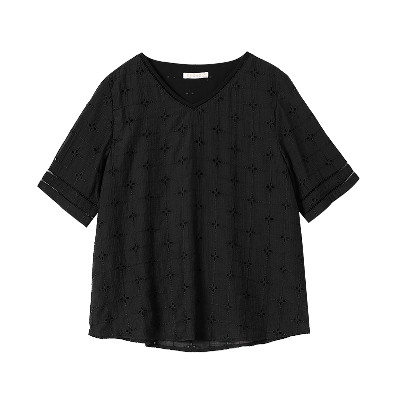 大码女装夏装新款宽松短袖小衫中老年妈妈洋气高级小衫遮肚子上衣