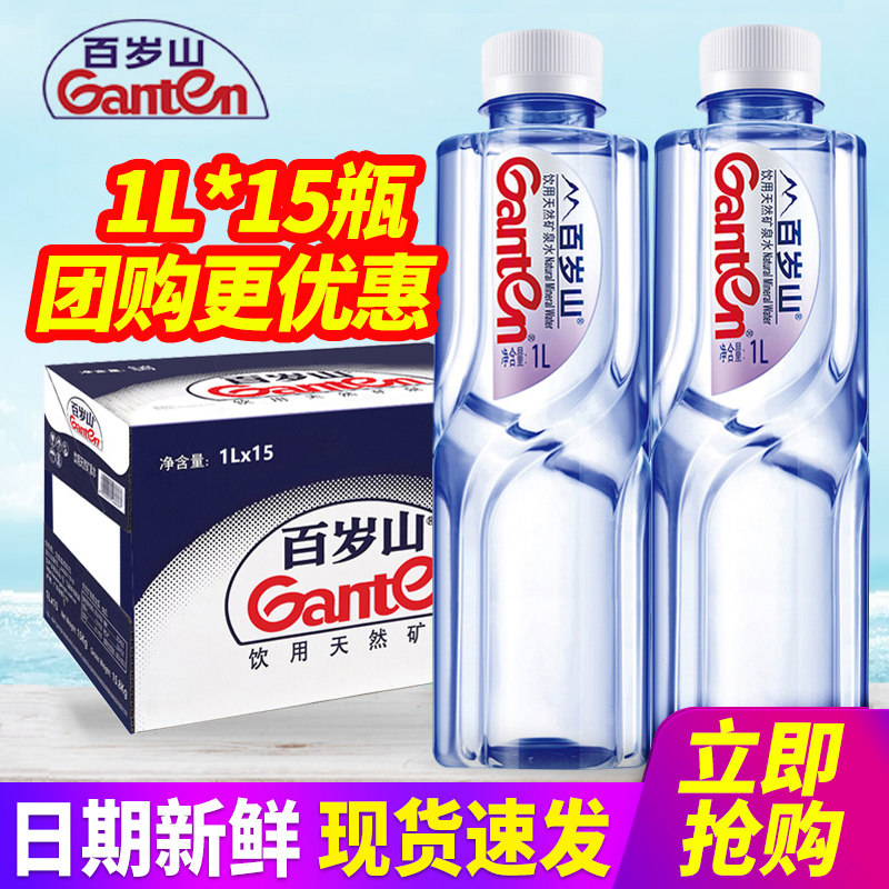 百岁山饮用天然矿泉水1L一升15瓶整箱包邮348ml570ml大瓶装饮用水