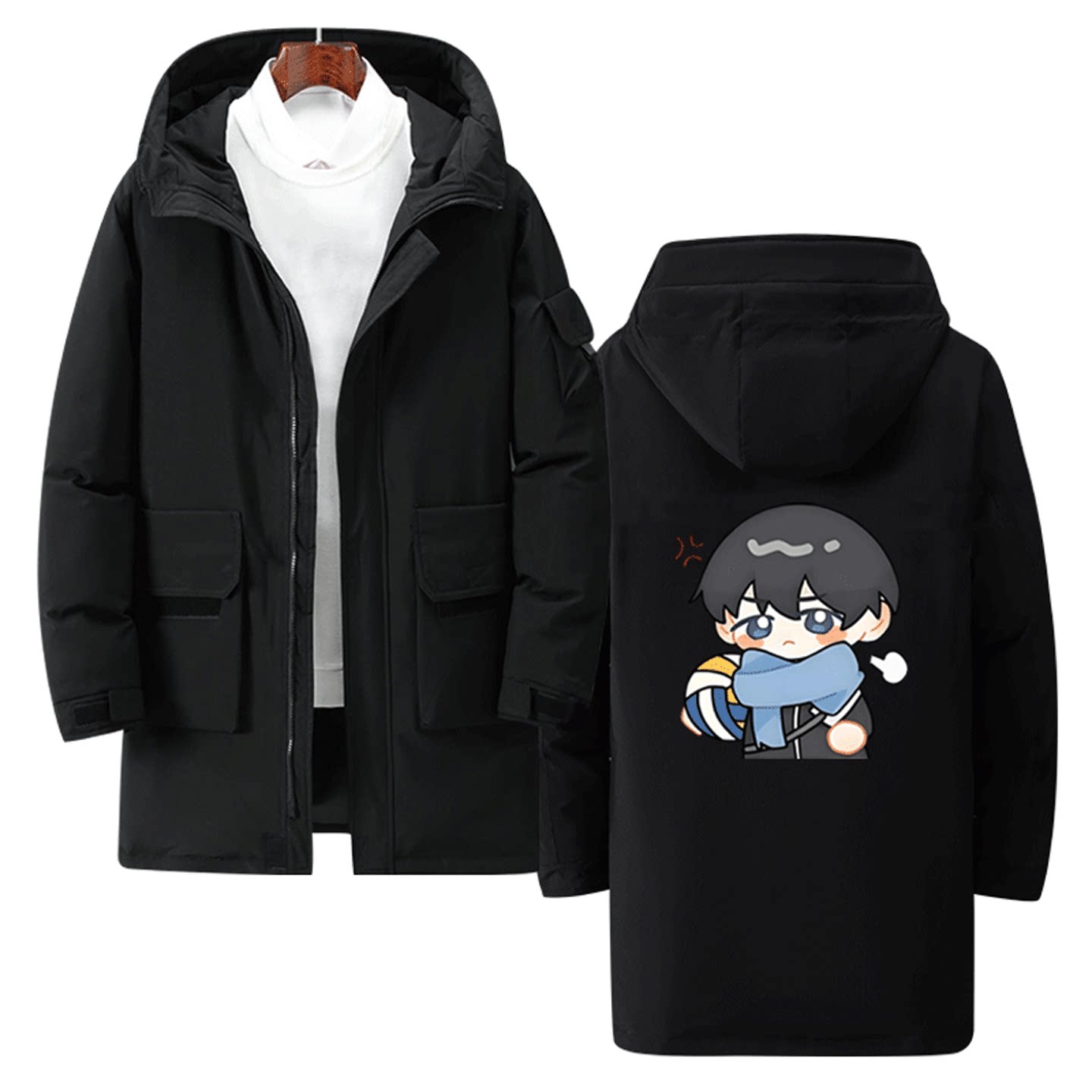 排球少年可定制中长款羽绒服动漫Q版影山飞雄及川彻日向翔阳秋冬