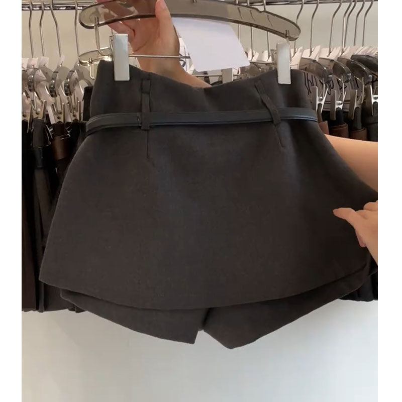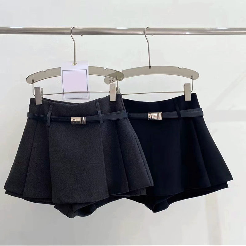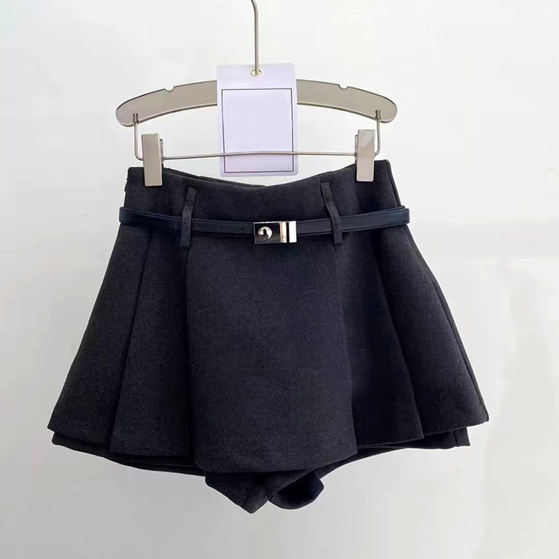 半身裙2025秋冬款毛呢短裙女高腰显瘦百褶裙假两件A字裤裙阔腿裤