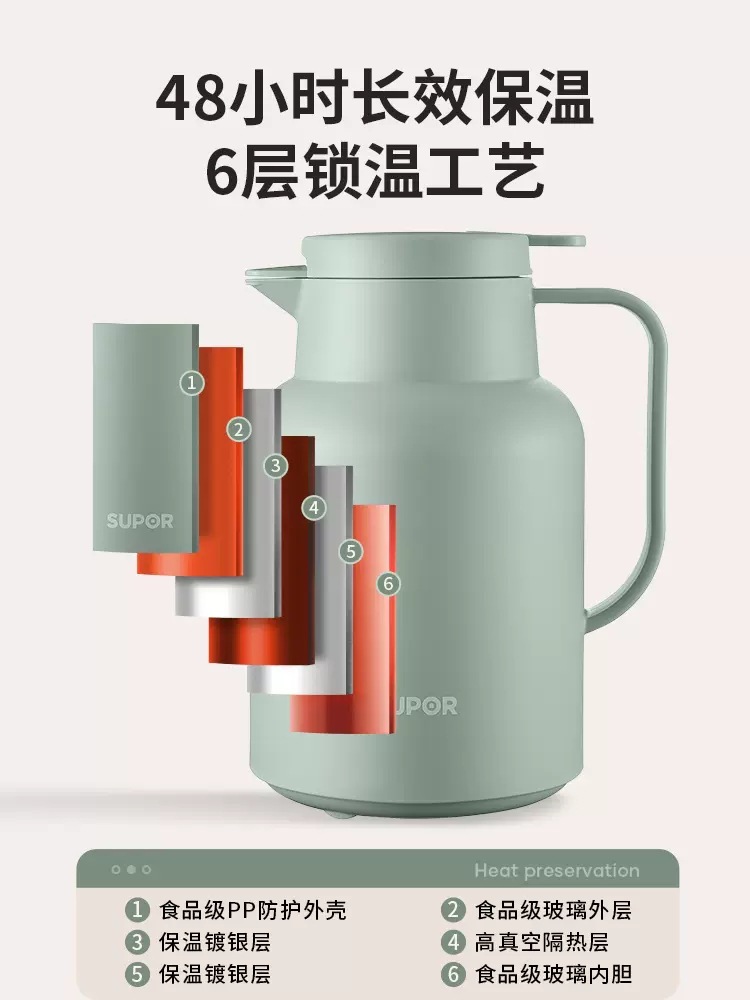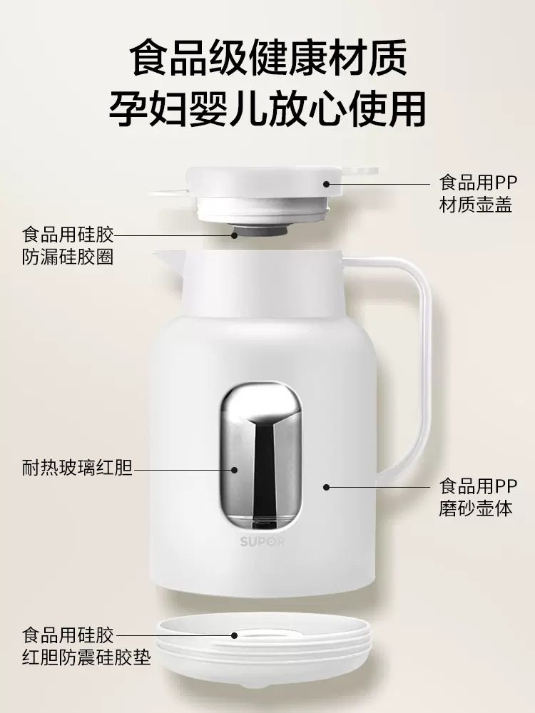 苏泊尔保温水壶家用保温壶大容量热水瓶玻璃内胆保温瓶便携暖水壶