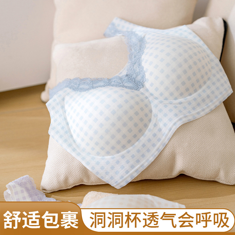蕾丝网格透气版无钢圈运动瑜伽内衣女聚拢调整型背心式文胸美背痕