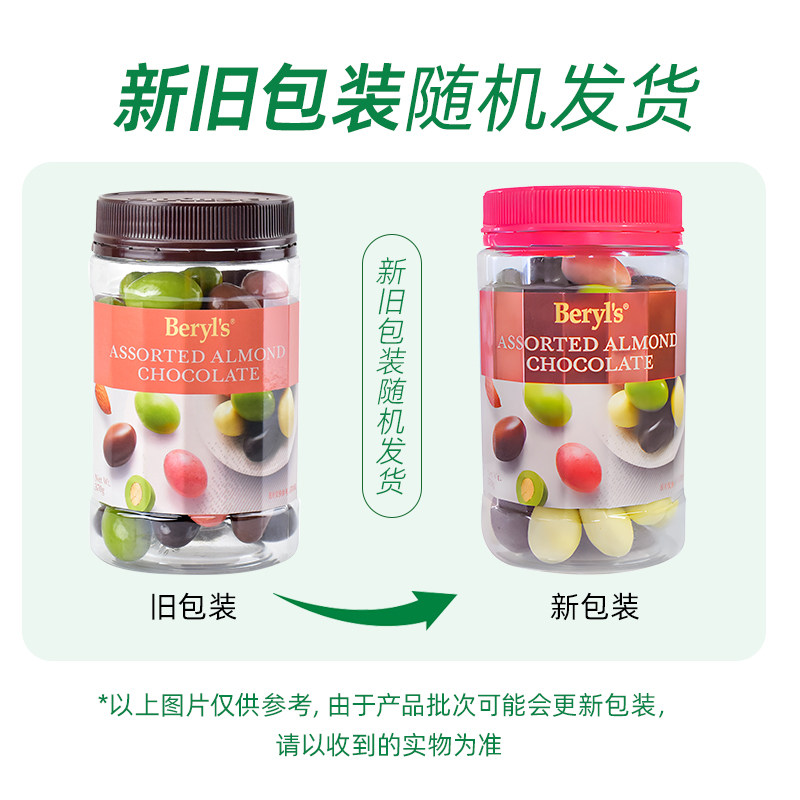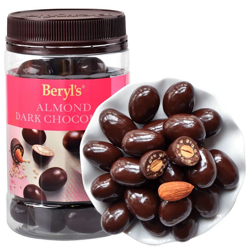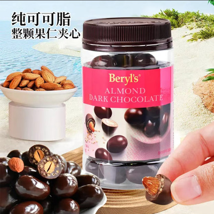 拍2惊喜价!马来西亚进口beryls扁桃仁夹心黑巧克力豆多口味零食