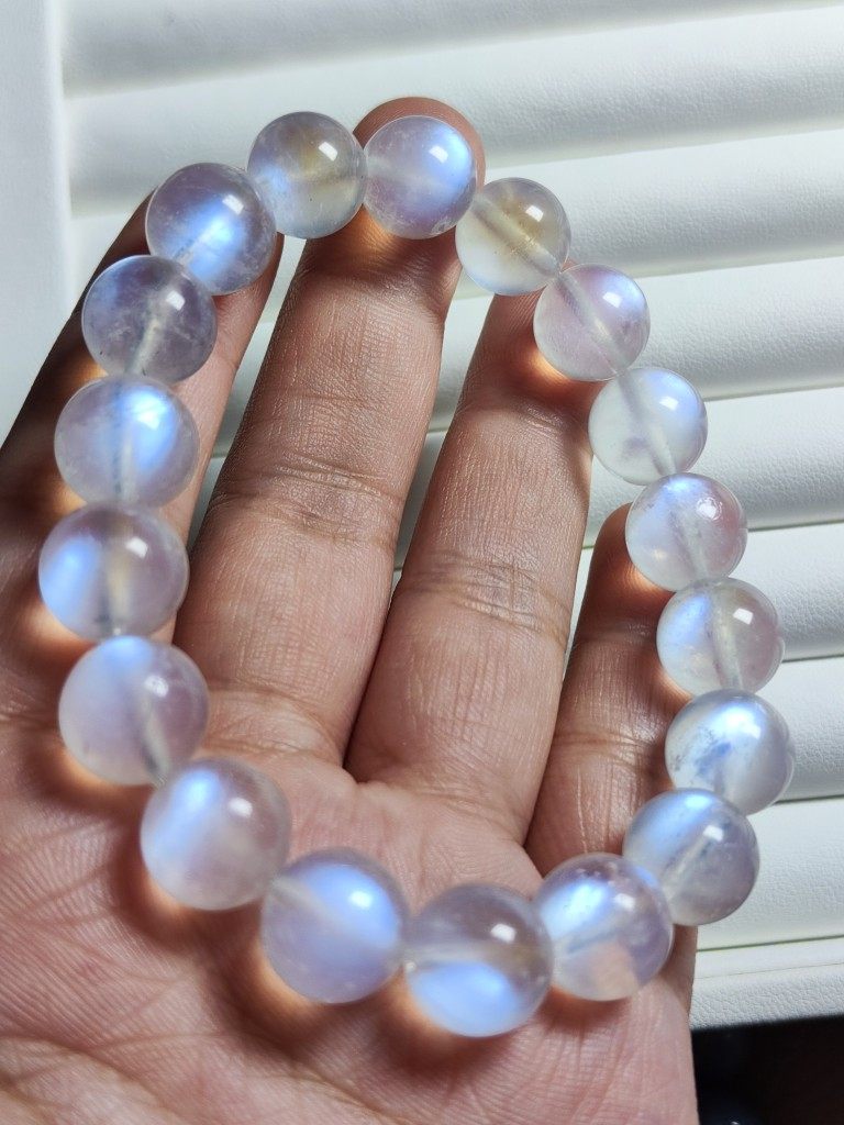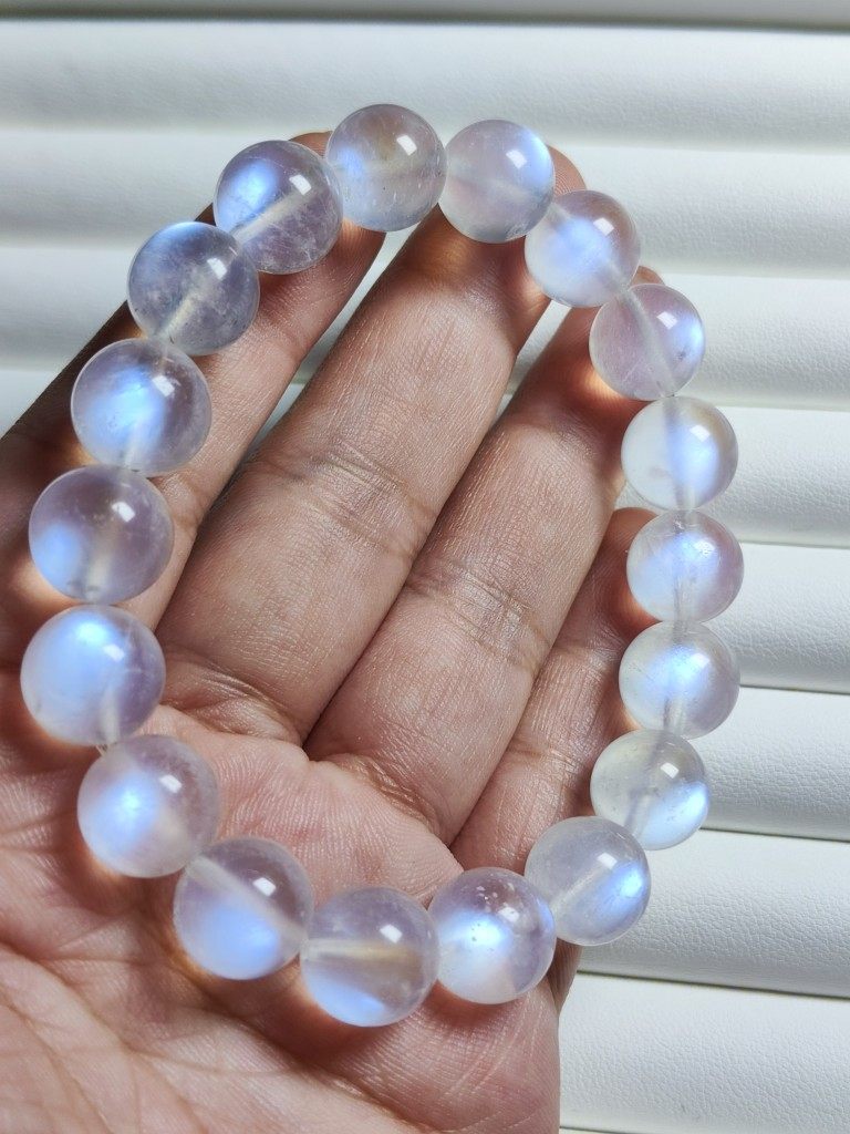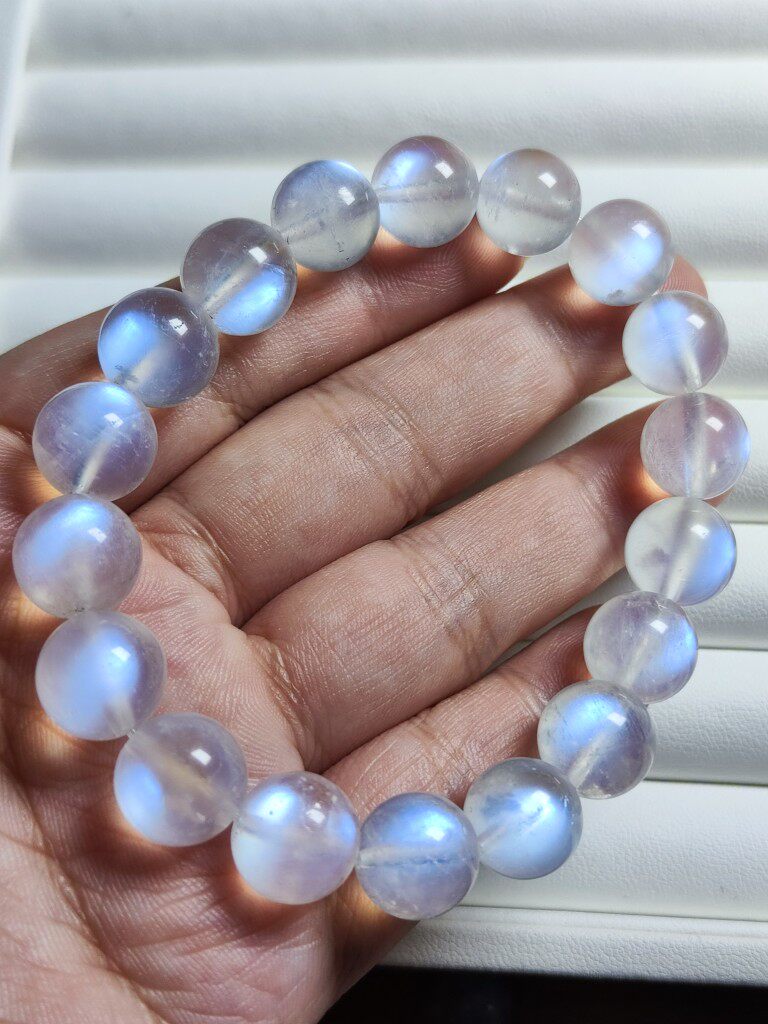 天然斯里兰卡冰种蓝月光手链蓝月光石手链蓝光奶油体手串一物一图