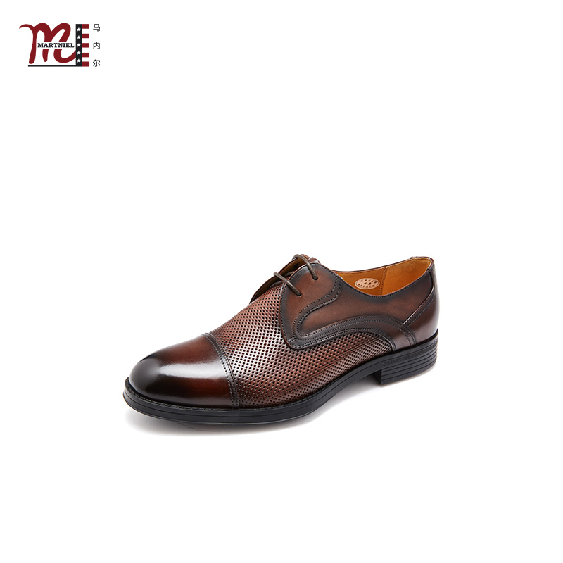 马内尔夏季新款牛皮革男鞋商务正装透气英伦真皮镂空皮鞋M03061