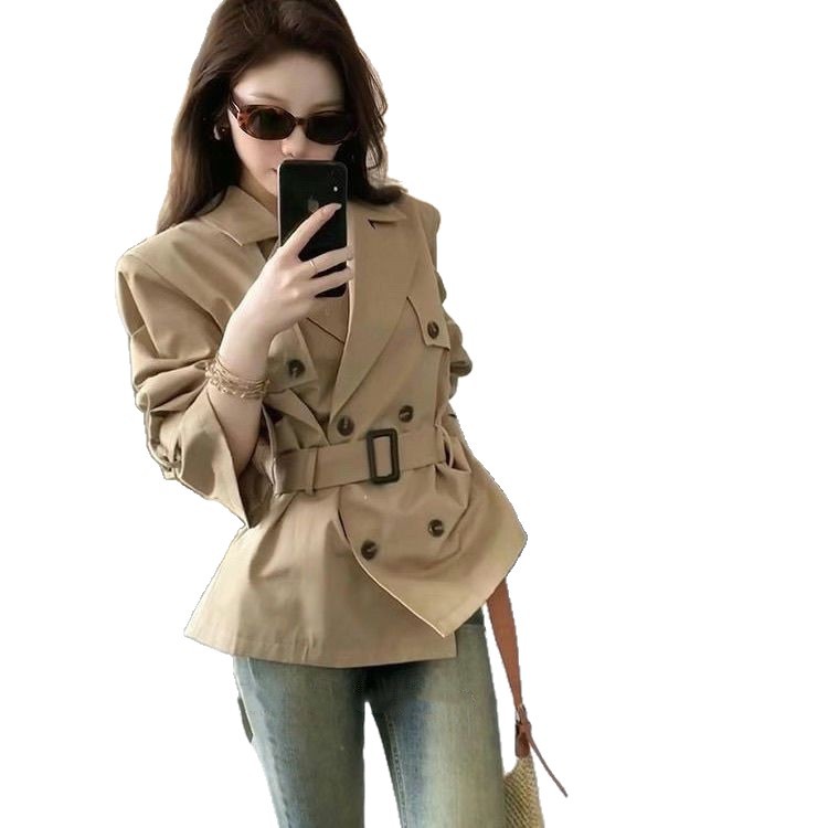 英伦风卡其色风衣外套女春秋季新款小个子超好看气质收腰短款