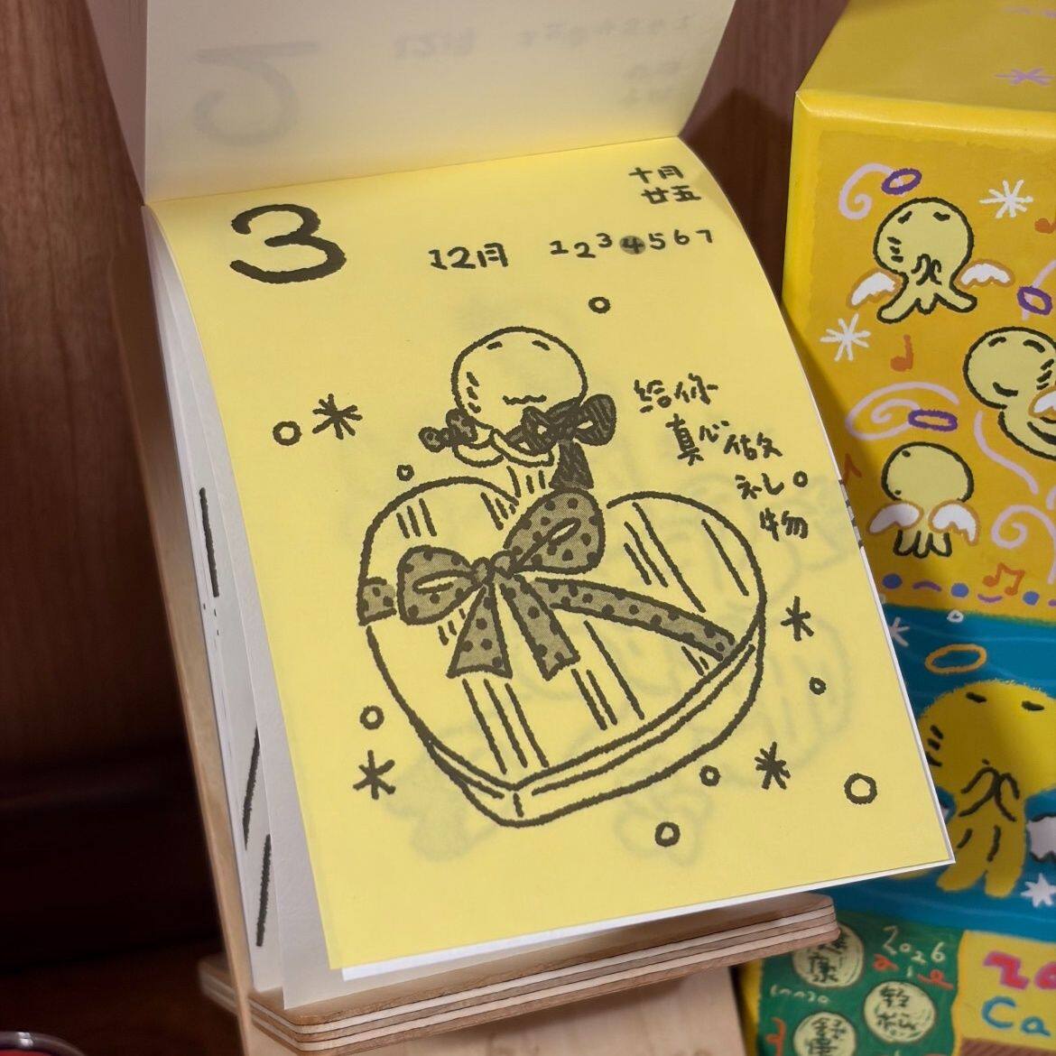2026年新款马年小章鱼涂鸦插画台历365一日一页翻页日历桌面摆件