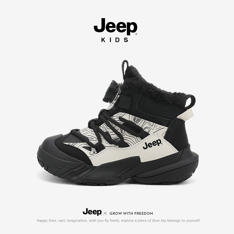 jeep男童加绒雪地靴2024冬季新款东北大棉鞋皮毛一体童鞋儿童棉靴