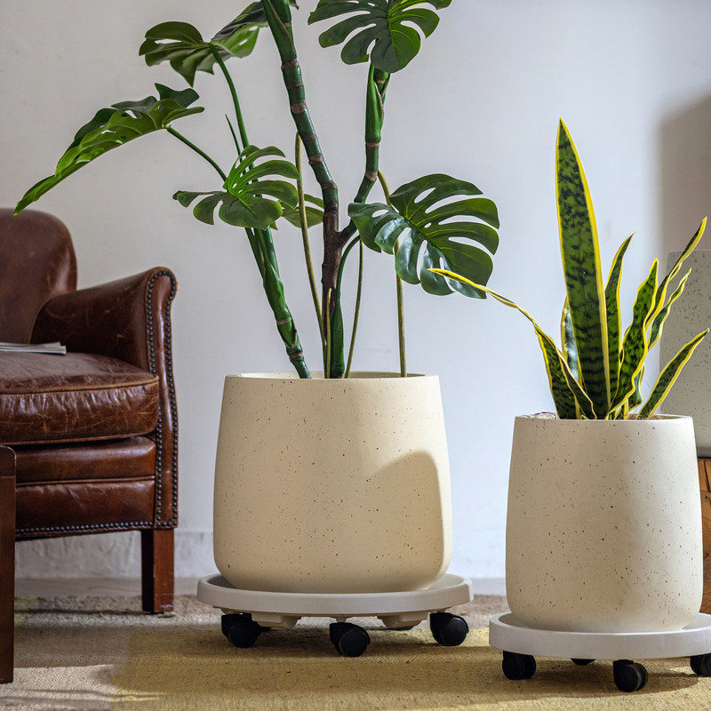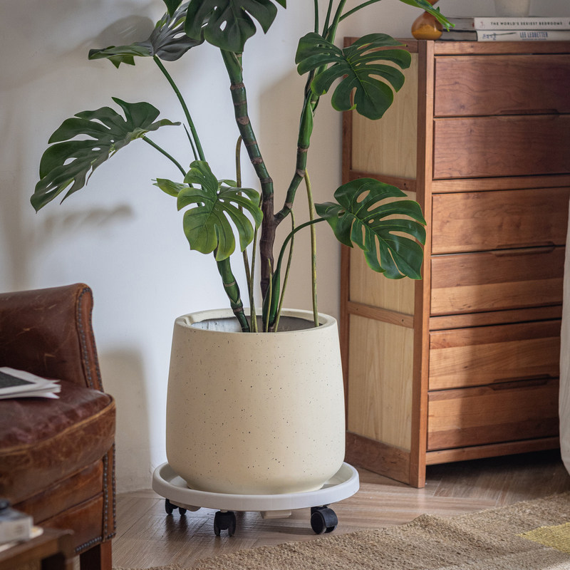镁泥仿陶瓷花盆大号种树带托盘客厅室内家用圆形发财树绿植大花盆