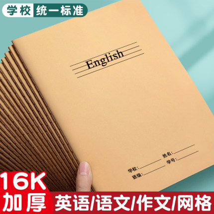 英语本16k作业本子小学生专用作文语文本初中生英文笔记本批发牛皮纸练习本薄3加厚数学三年级四五三到六听写
