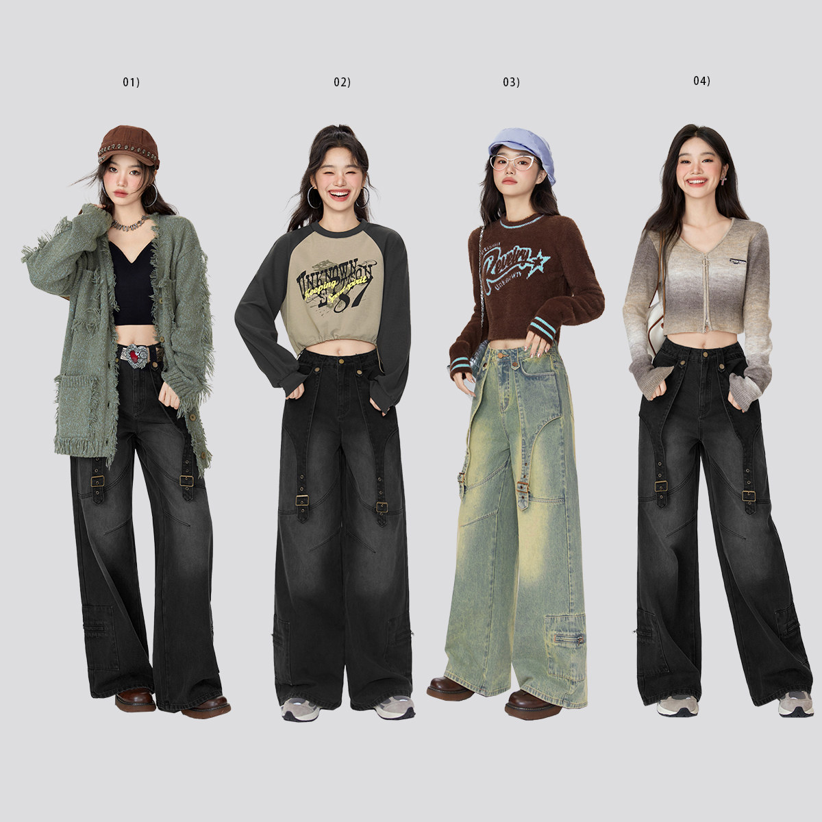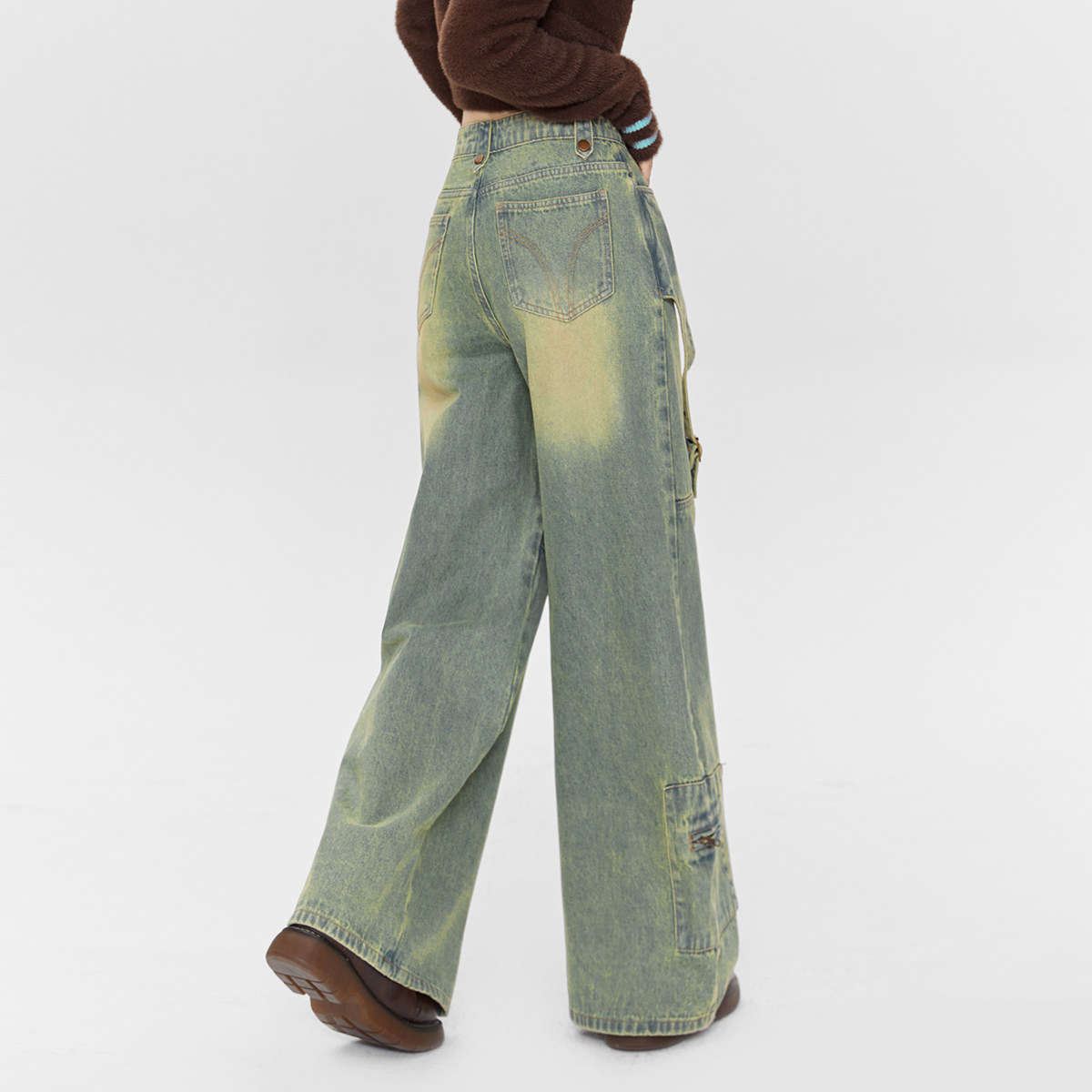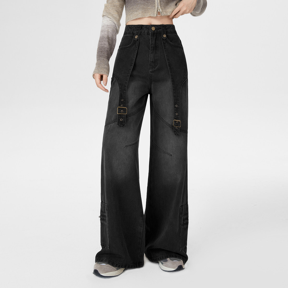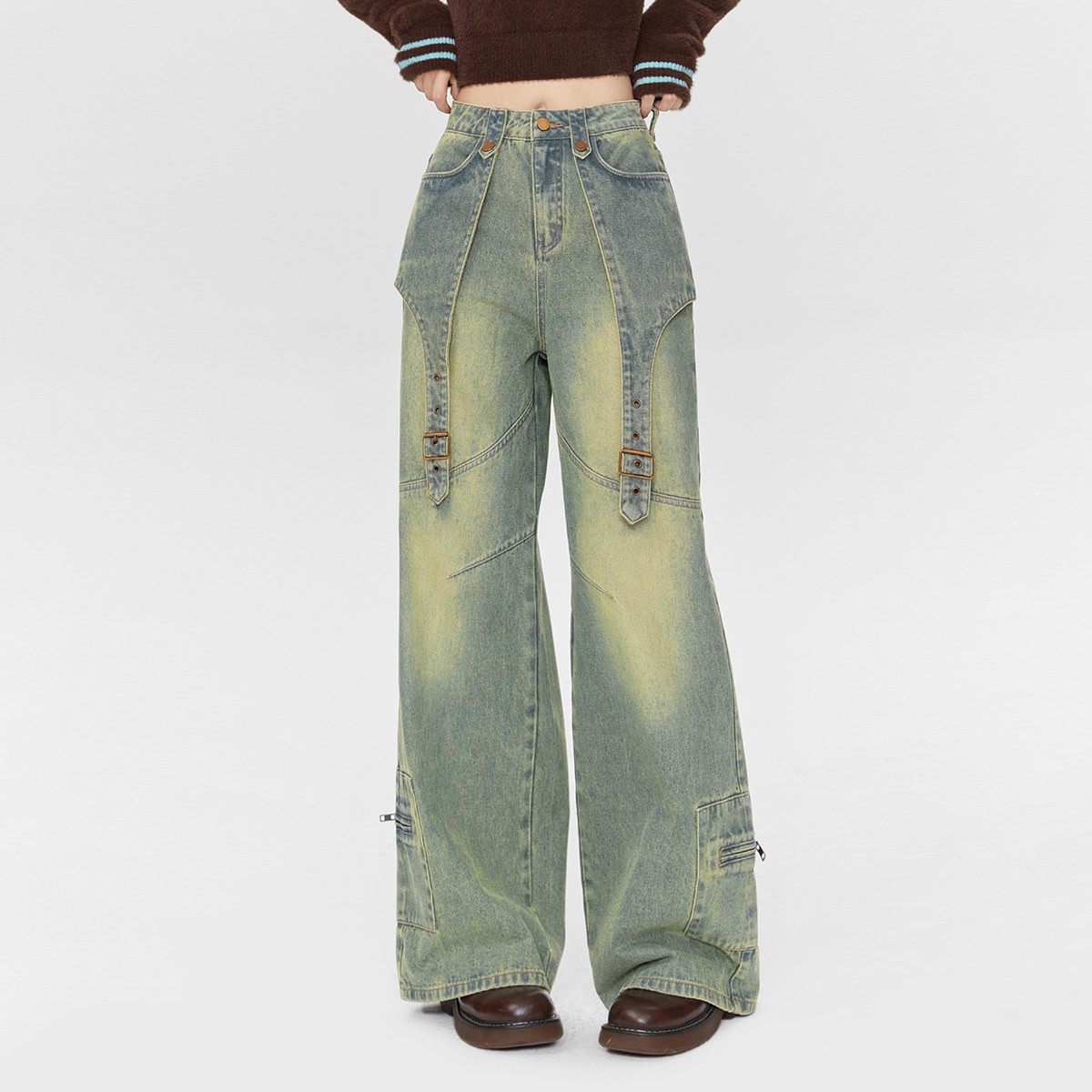 【69/件】EPTISON牛仔裤女2025秋新款直筒复古做旧设计高街工装裤