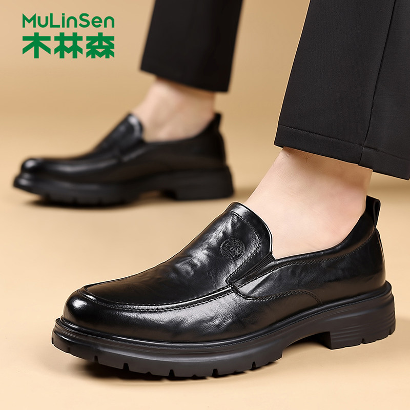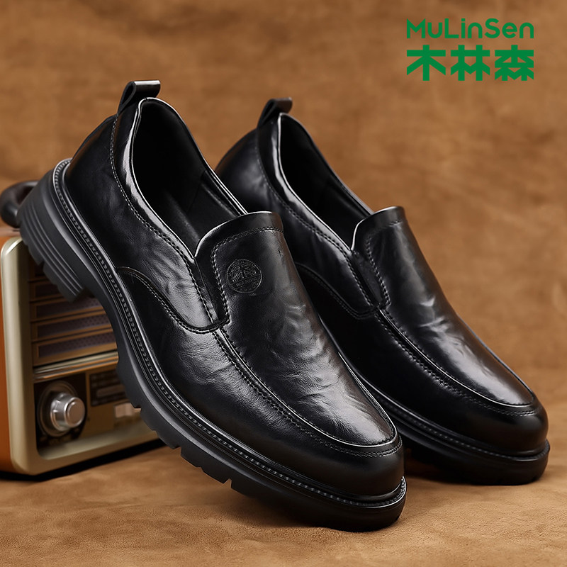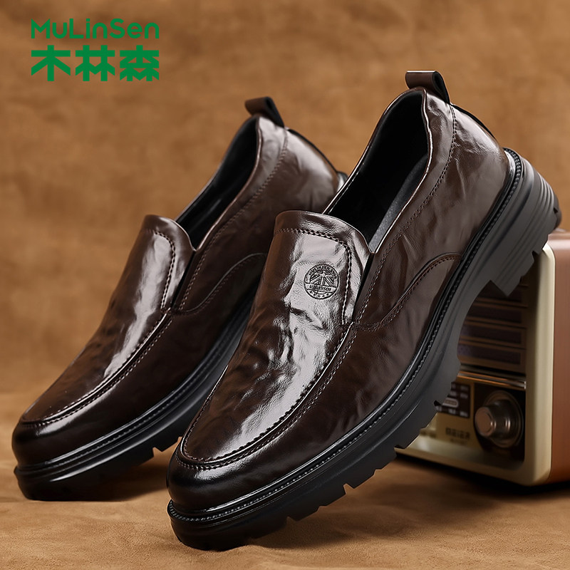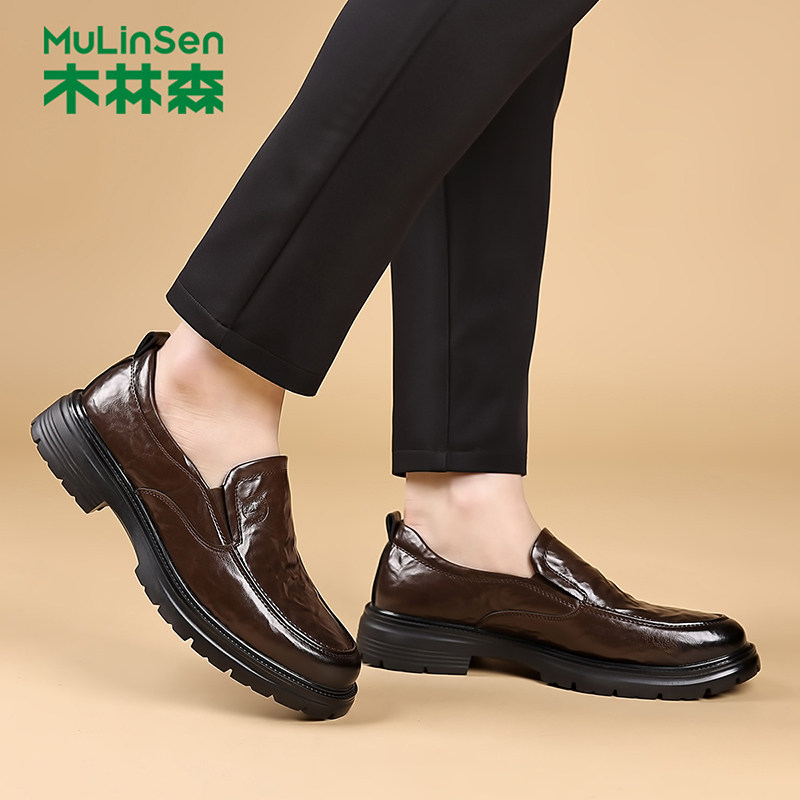 木林森时尚皮鞋男鞋秋季复古英伦风商务休闲鞋男士一脚蹬德比鞋