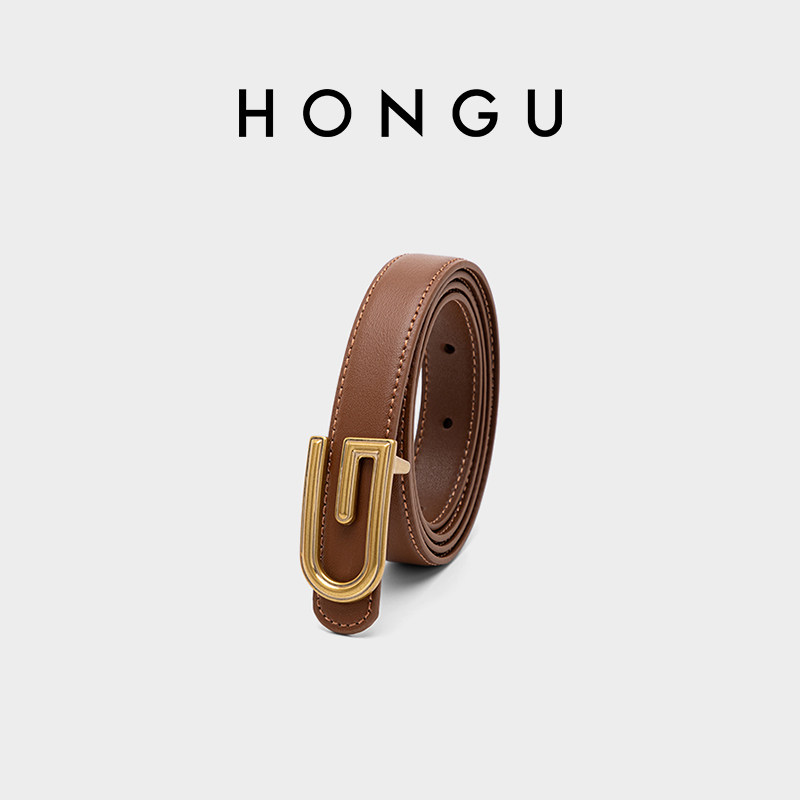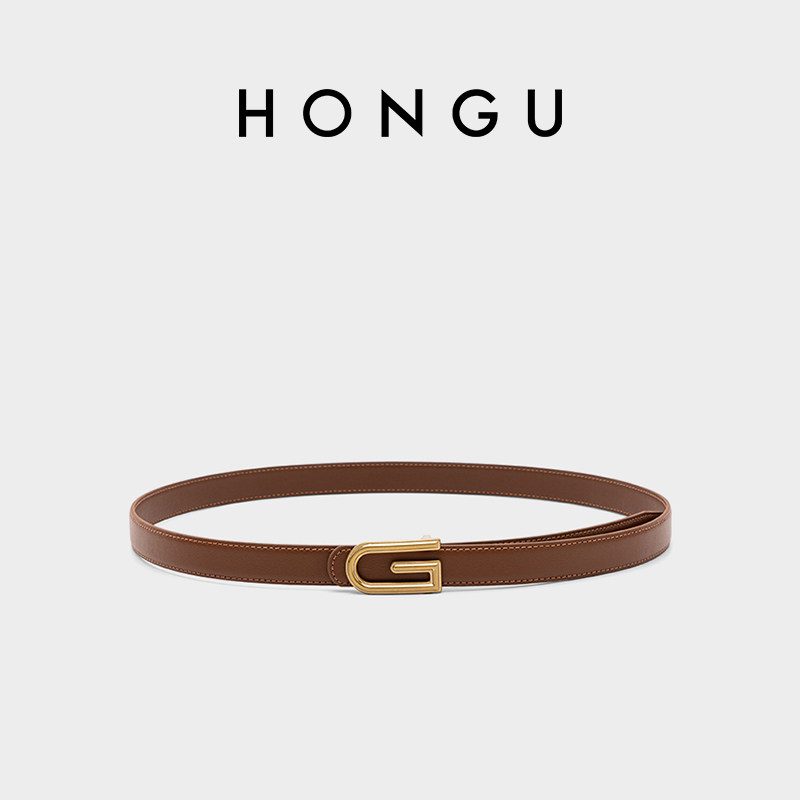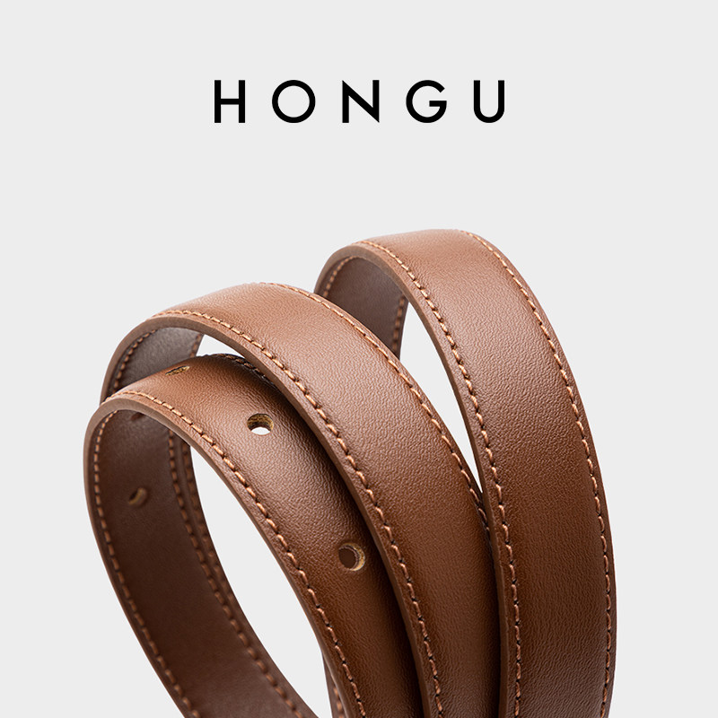 HONGU/红谷新款女士牛皮皮带休闲裙子西装牛仔裤细腰带百搭裤带饰