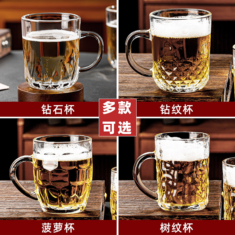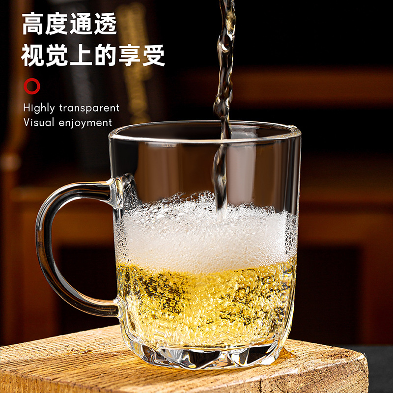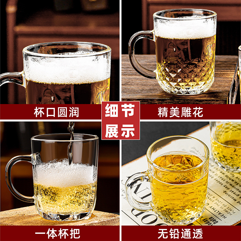 青苹果玻璃水杯家用套装扎啤杯子带把啤酒杯加厚耐高温茶杯六只装