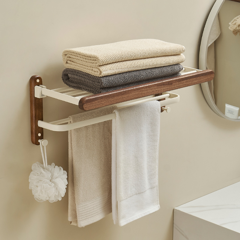 美拉德胡桃木卫生间置物架毛巾架浴室免打孔浴巾架卫浴挂件套装