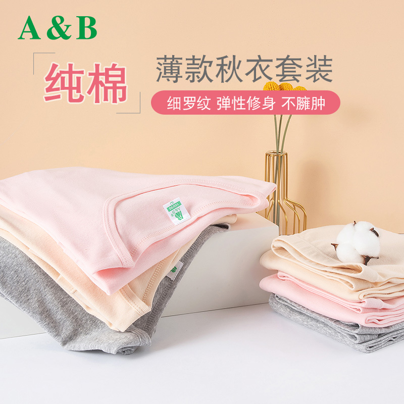 AB内衣女士秋冬薄款保暖套装弹力修身细罗纹秋衣秋裤纯棉内衣套装