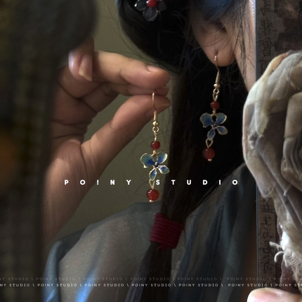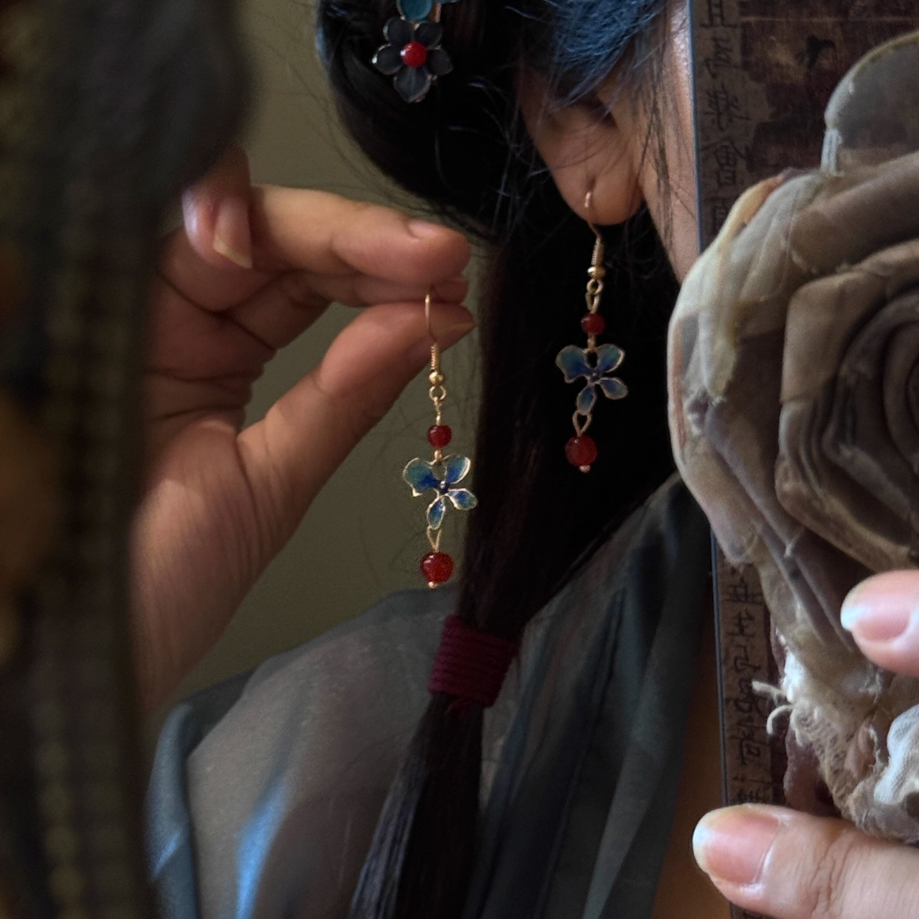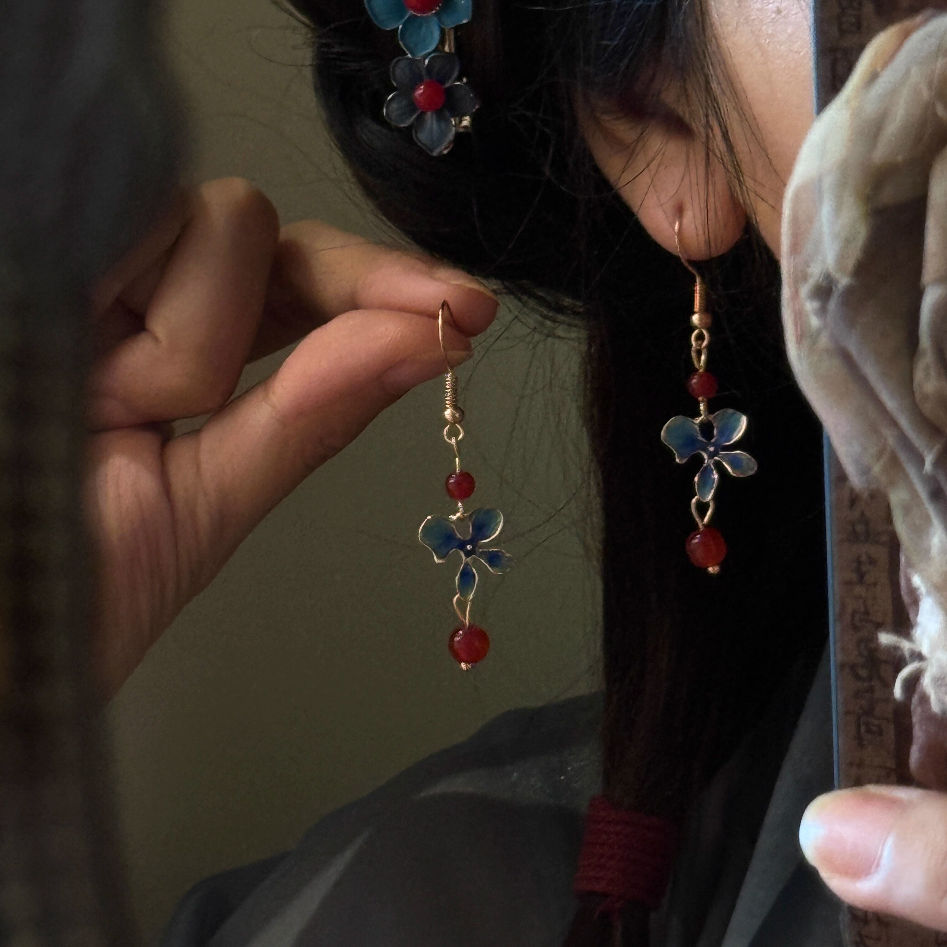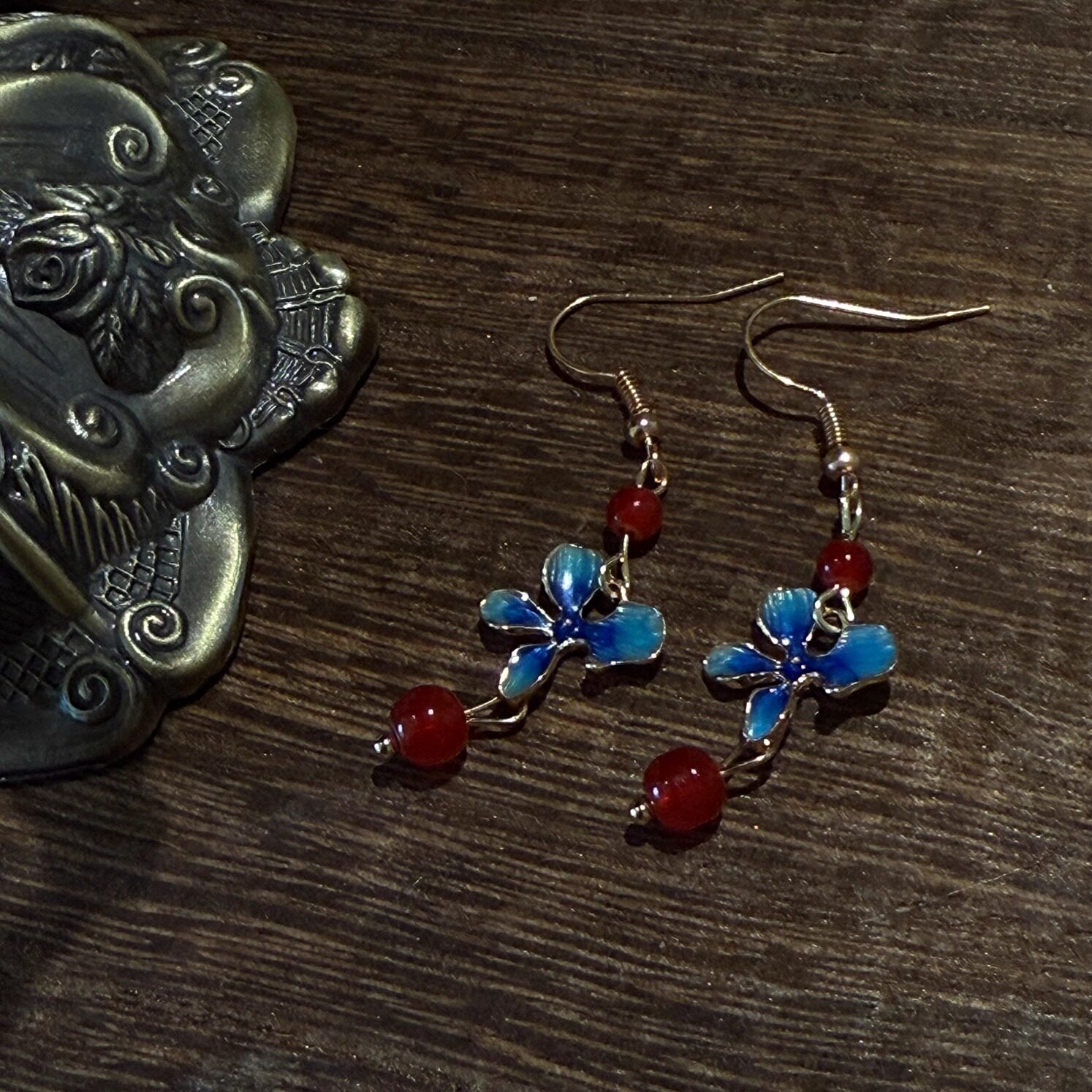 新中式国风花朵耳环女复古风高级感气质小众设计长款玛瑙耳坠耳饰
