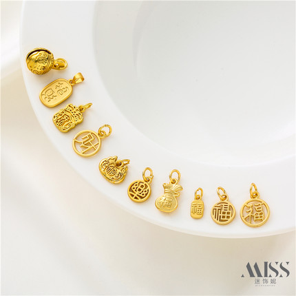 保色哑金福字吊牌招财纳福吊坠圆形diy手工项链手链耳坠配件