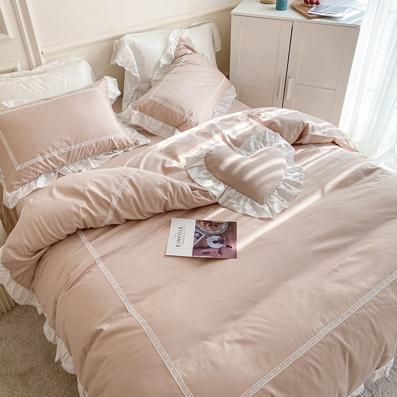 蕾丝床上四件套公主风网红被套床裙少女心全棉夏季潮床品套件