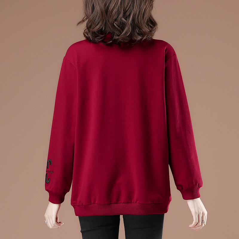 2025新款纯棉无帽卫衣女长袖洋气中年妈妈宽松加肥加大码时尚上衣