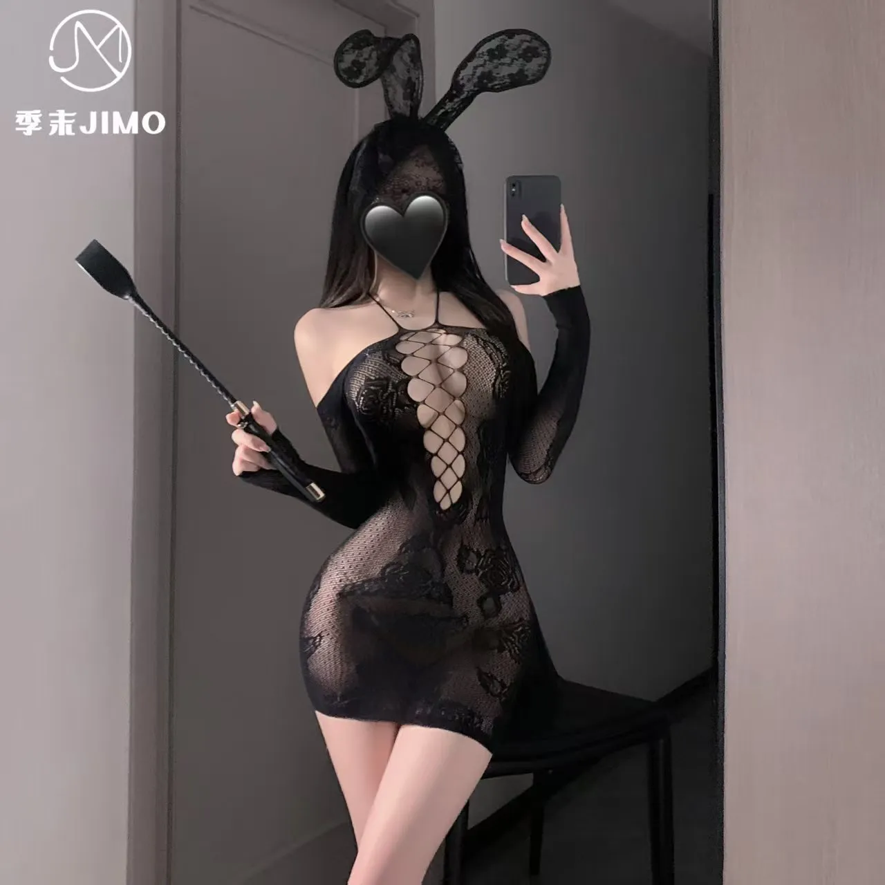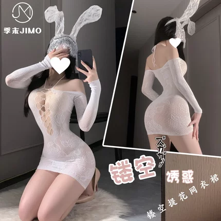 6001潮尚夜总会性感吊带挂脖包臀裙提花缕空透视内衣可撕连衣裙