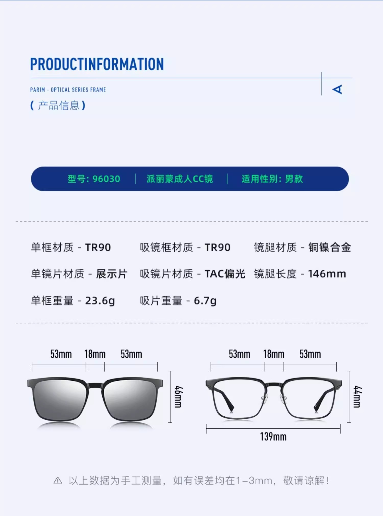 派丽蒙磁吸近视墨镜眼镜