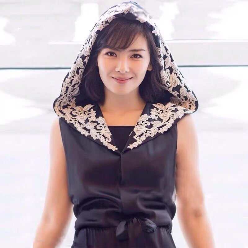 2020新款欢乐颂刘涛安迪明星同款黑色睡衣女夏性感绣花连帽家居服