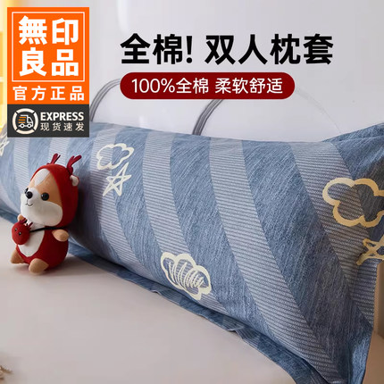无印良品全棉双人长款枕头套纯棉