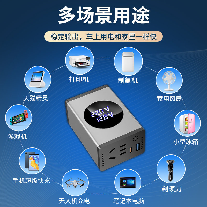 车载充电器12V24V转220V大功率逆变器汽车电源转换插头超级快充