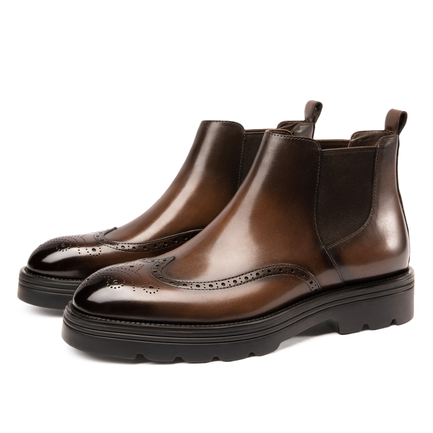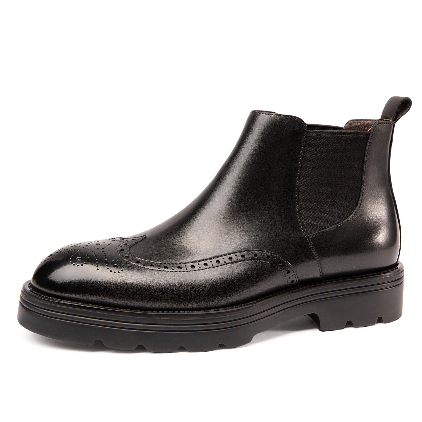 冬季布洛克男鞋真皮马丁靴男加绒工装靴高帮皮鞋英伦皮靴雕花男靴