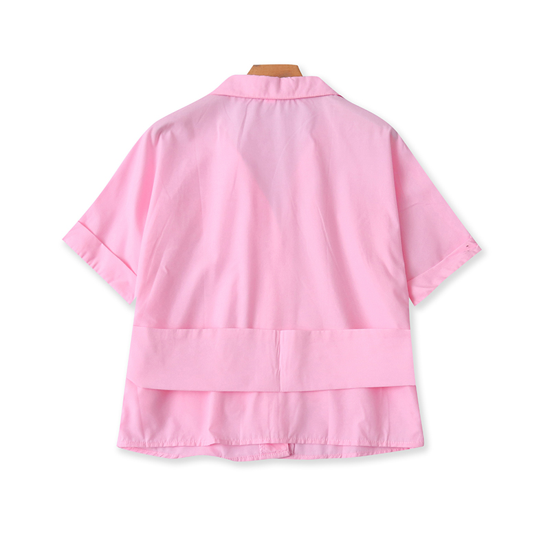 翻领系带显瘦女短袖衬衫+直筒裤 夏季新款休闲时尚两件套装 21522
