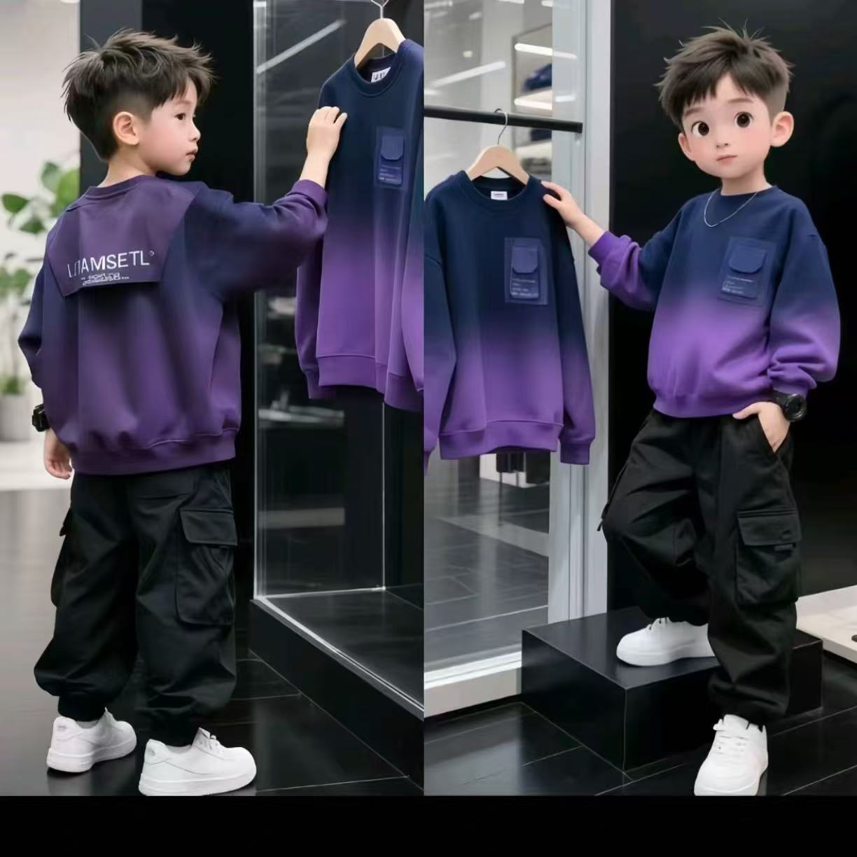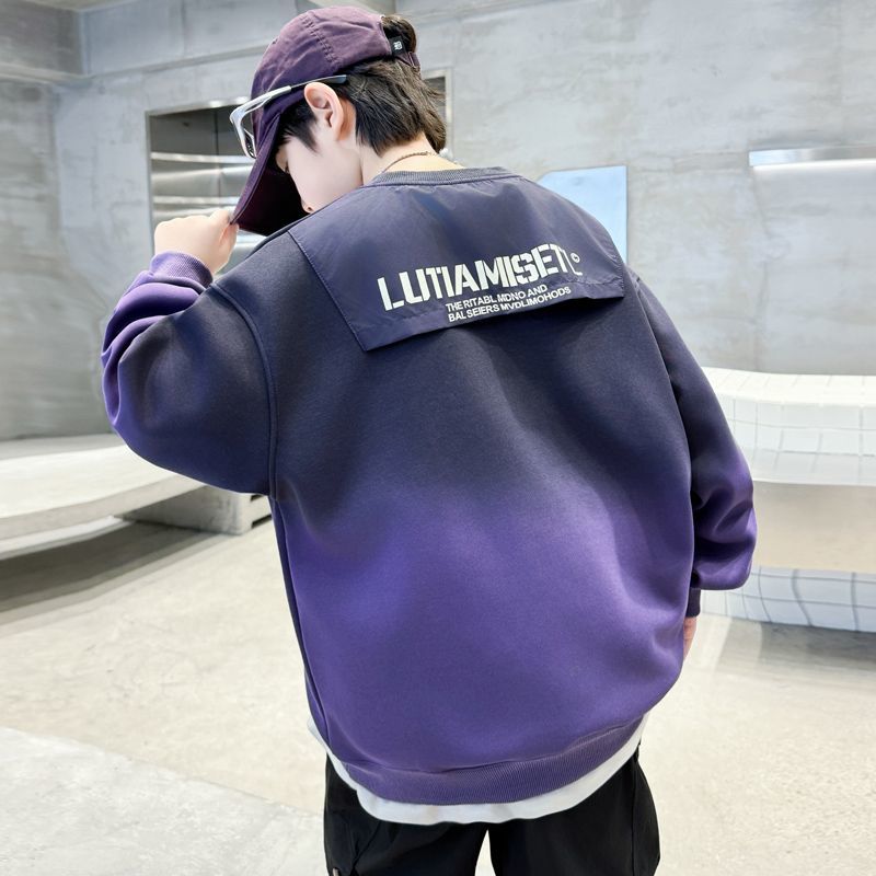 男童加绒卫衣棉2025中大童渐变色长袖儿童棉卫衣帅气新款上衣春秋