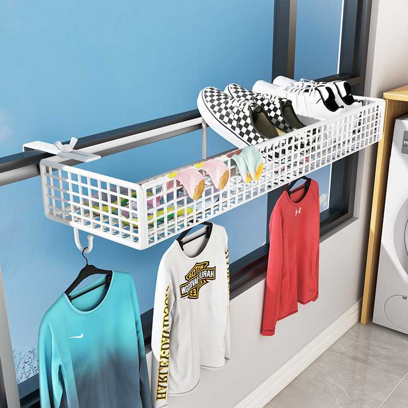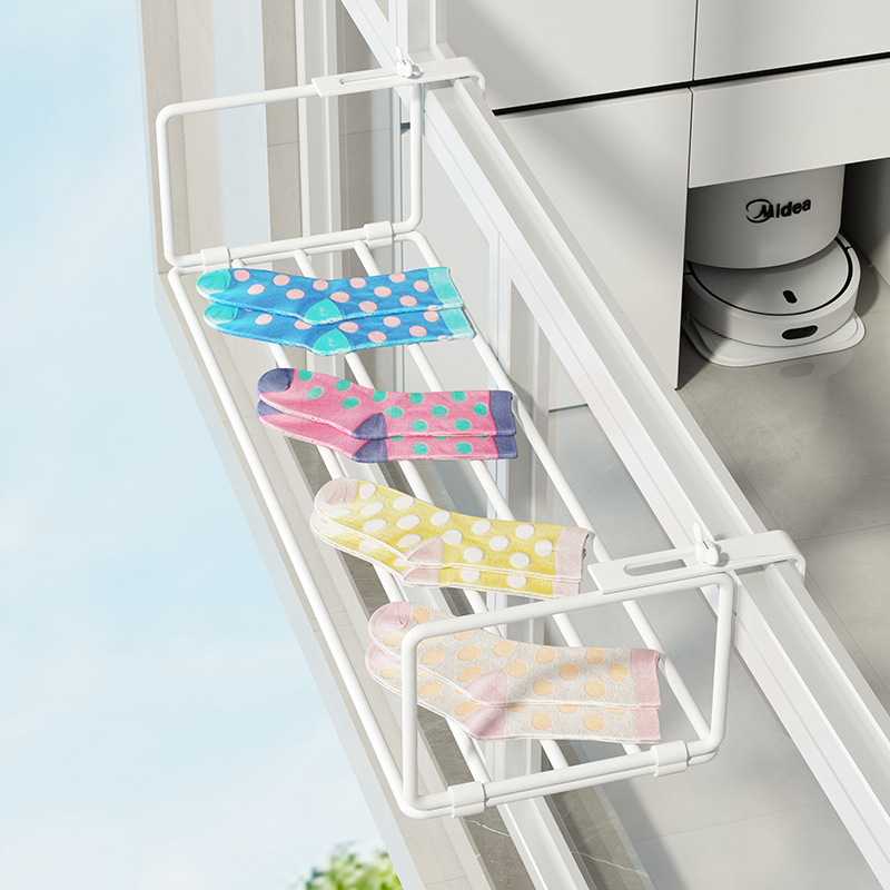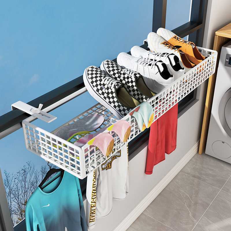 阳台晾衣神器防盗窗护栏杆窗外晾衣架窗户晾晒杆窗台伸缩晒鞋架子