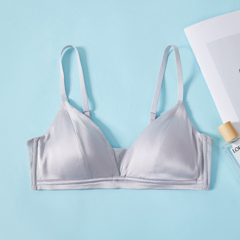 真丝缎面光面薄款文胸 轻奢桑蚕丝无钢圈内衣大胸显小三角杯胸罩