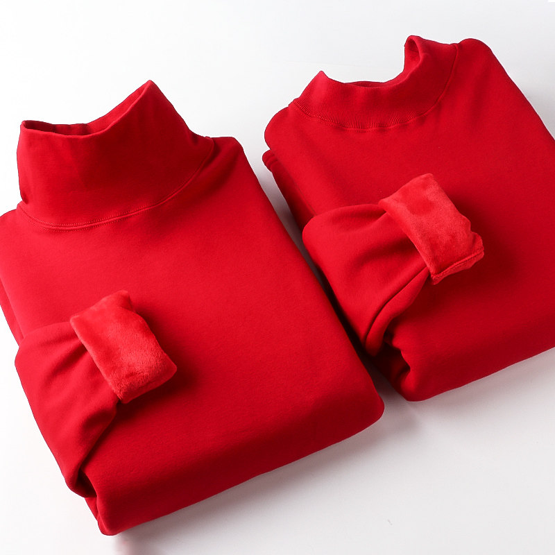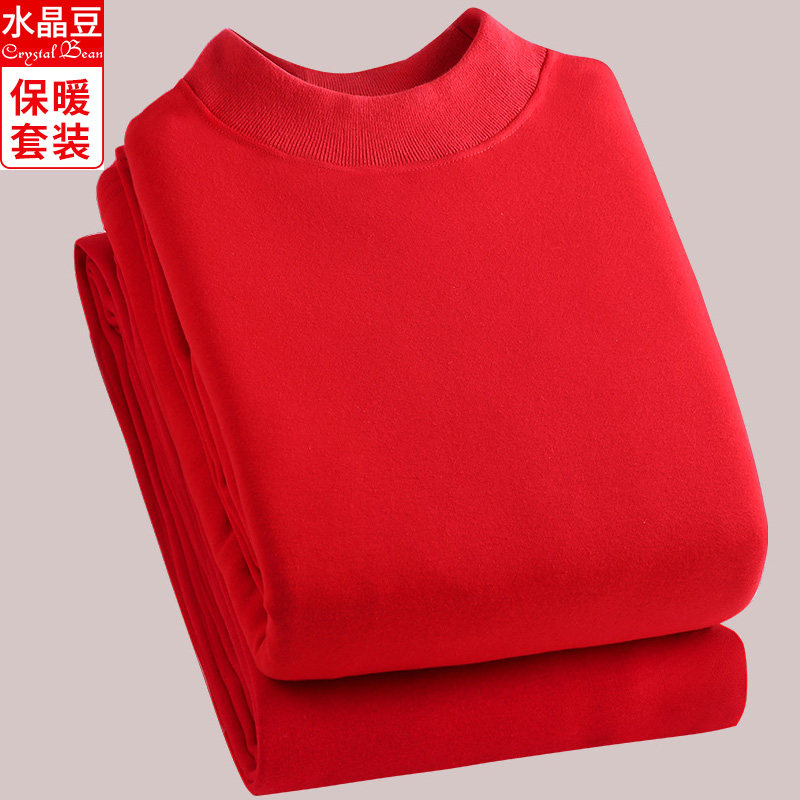 本命年女老人保暖内衣上衣大红色加绒加厚中老年秋衣套装高领衬衣