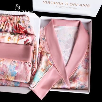 达芬奇密码2026春夏新款落英缤纷舒适宽松大码长袖睡衣女家居服