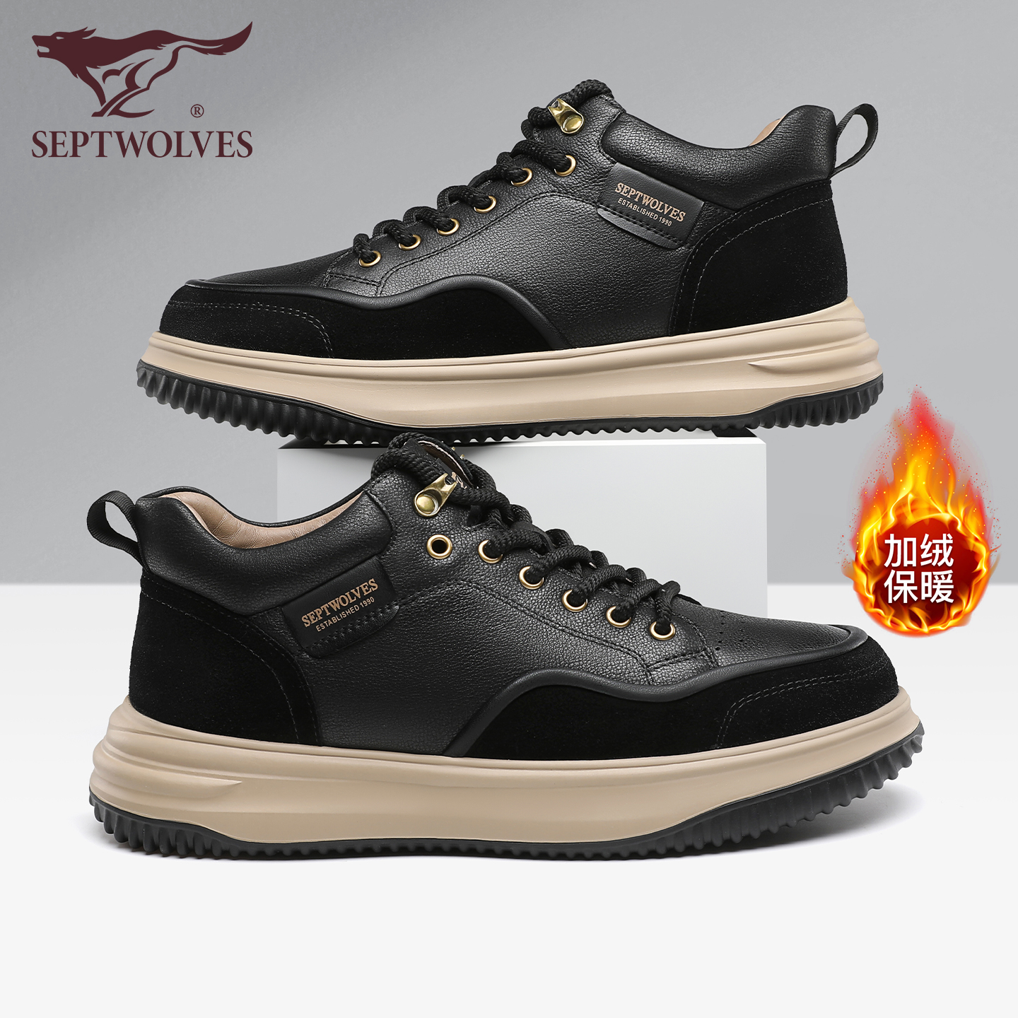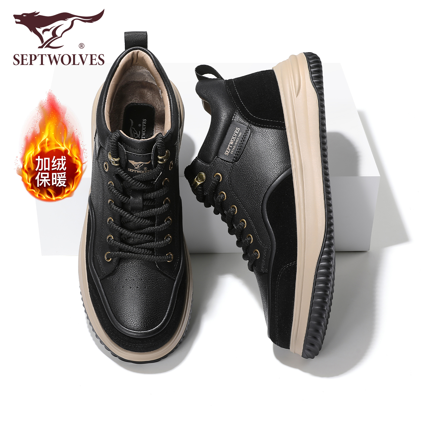 七匹狼冬季加绒男鞋高帮保暖真皮休闲鞋户外加厚防寒男生运动板鞋