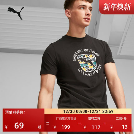纯棉透气休闲短袖T恤男子PUMA彪马新款夏季印花运动上衣686393