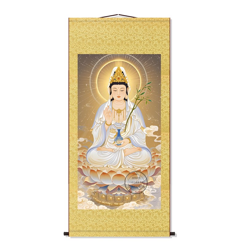 净瓶观音办公室挂画茶室新中式禅意装饰画卷轴挂图字画挂轴